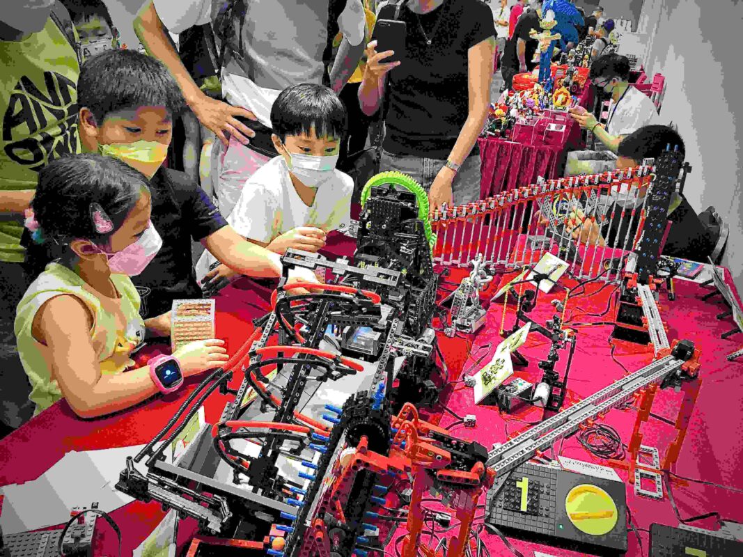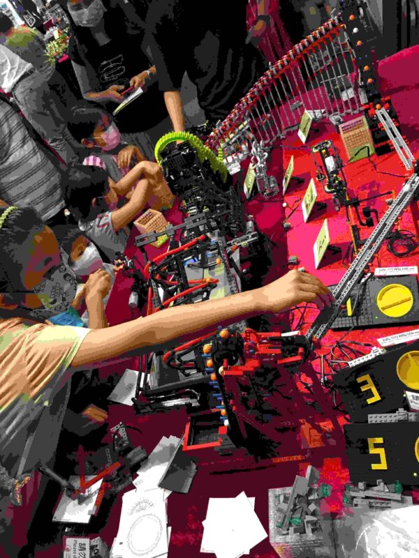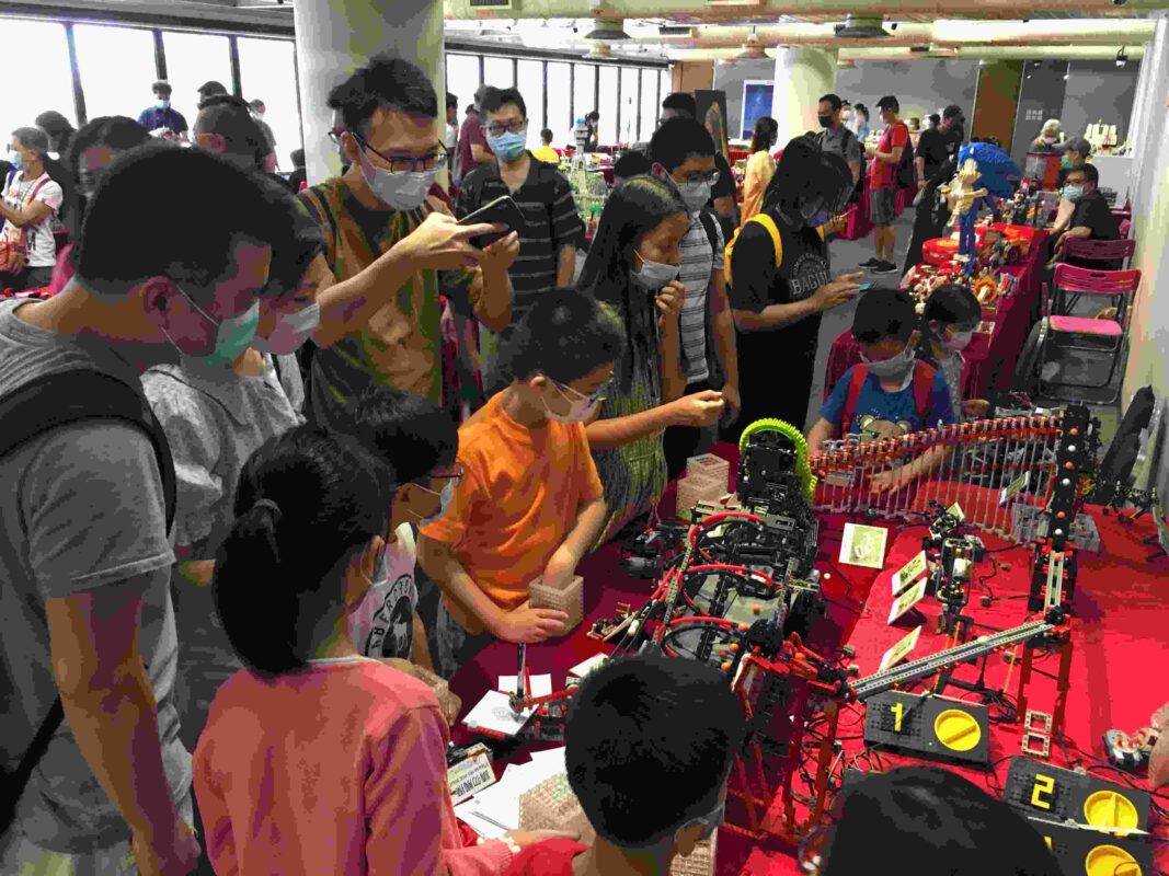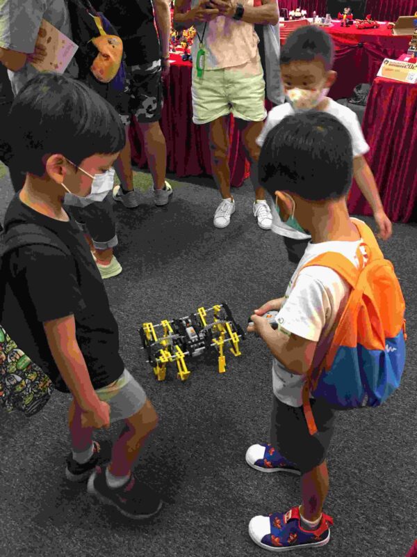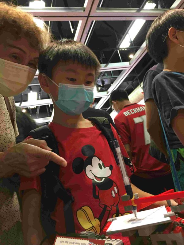 Different from the other booths, we focus on interaction with visitors. Children would be invited to help place Lego balls in different positions of the lines of Lego Great Ball Contraptions, allowing them to observe the balls in various Lego GBCs. To understand the principle of mechanical leg systems, we lend the Lego remote-controller to allow children to personally control the Lego Remote-controlled Strandbeest and experience the operation and practical application of the mechanical devices. Children can also freely choose the leverage ratio specified by the Lego Spirograph, allowing Lego machine to draw beautiful and complex pictures for them.